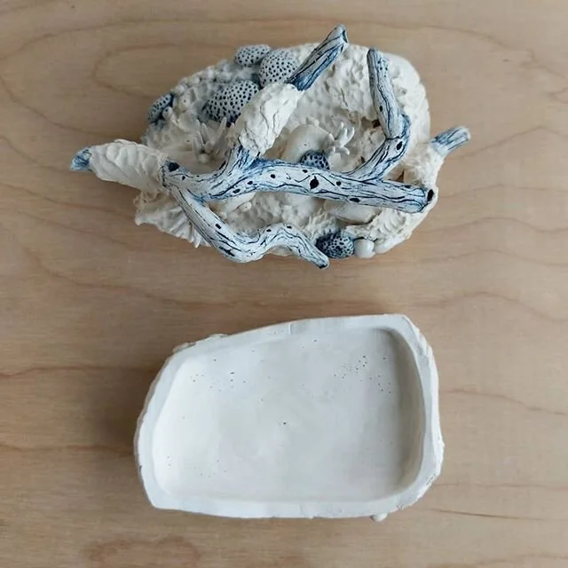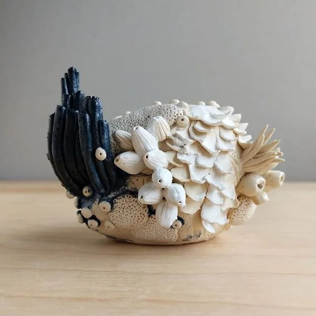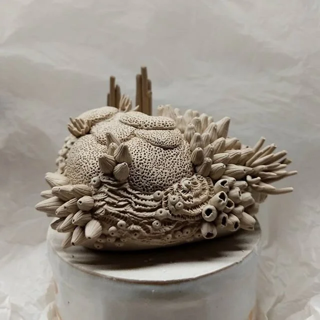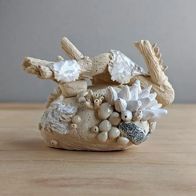 Wendy Whatley creates works in multiple mediums: paper, ceramics and watercolor with forest and oceanic themes, such as rocks with barnacles, fungi and sponge-like growth on them. She grew up exploring the mossy woods of Virginia, which was an early influence on her work. For many years, her artistic focus was spent on small watercolor botanical paintings but she took quickly to ceramics when her and her husband set up a kiln and studio at their residence in southern California. Currently she has moved into layered paper cut works. She works as a product designer by day, but you can find her on most nights and weekends working in the studio.